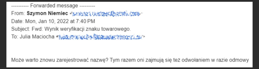 Przez cały czas Szymon Niemiec drąży także temat zastrzeżenia nazwy “Parada Równości”. W 2022 r. zwrócił się w tej sprawie do jednej z wyspecjalizowanej w sprawach patentowych firm z pytaniem o taką możliwość a dział prawny tej firmy przeprowadził weryfikację w tej sprawie. Mimo że wedle prawników tej firmy istnieją bezwzględne przeciwwskazania do rejestracji znaku, a na ich podstawie Urząd Patentowy może odrzucić znak do rejestracji. Szymon Niemiec próbował kolejny raz przekonać Zarząd do takiej próby. Zarząd Fundacji nie zrobił tego.